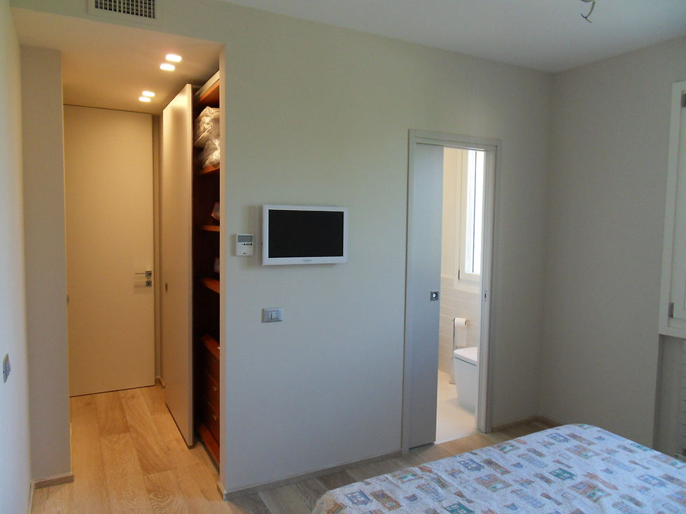 A seguito dei lavori di ristrutturazione che hanno interessato la parte impiantistica e gli esterni della casa di famiglia, si è intervenuto successivamente anche al suo ambiente interno. Le novità hanno in parte interessato l'organizzazione spaziale, con l'inserimento di un bagno nella camera padronale e l'eliminazione del divisorio tra cucina e soggiorno creando un open-space, ed integralmente le finiture. L'uso di superfici dai toni chiari dei rivestimenti, mobili e tinte murali hanno contribuito a donare un aspetto moderno, luminoso e pulito. Mentre i materiali come legno, pietra, mosaici e metalli lo hanno impreziosito. Particolare attenzione è stata posta nella progettazione di alcuni mobili funzionali: la cucina, il contenitore-divisorio della zona giorno, il mobile-lavanderia del bagno di servizio che, oltre ad integrarsi perfettamente con lo spazio architettonico ridisegnato, rispondono a pieno alle esigenze della committenza.